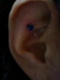 青いストーンにしたのだけれどもが、飾りをでかくしたいがために14Gであけてきました。